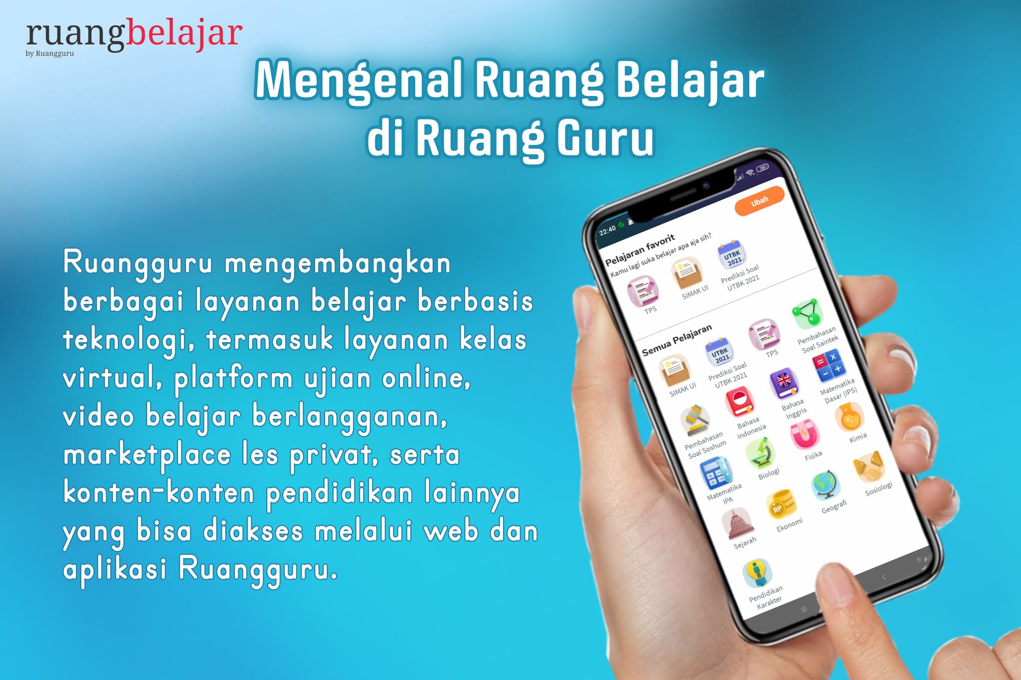 pendidikan lainnya yang bisa diakses melalui web dan aplikasi Ruangguru.