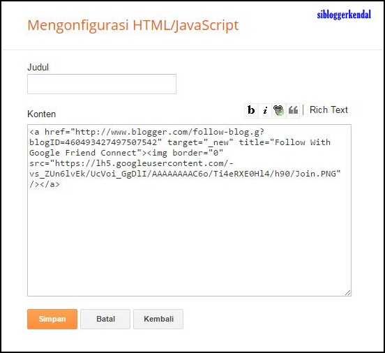 gadget pengikut’ akan muncul lagi jendela popup layaknya di bawah ini. Ketik