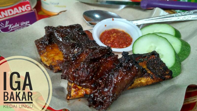 Iga bakar yang disajikan di kedai ungu,