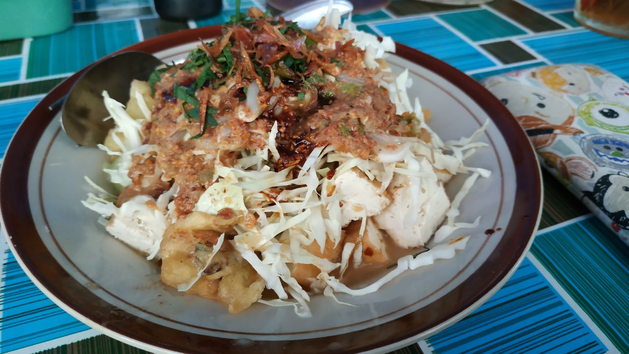 tinggi. Porsi yang saya dapatkan juga banyak, bumbu kacangnya melimpah. Bahan