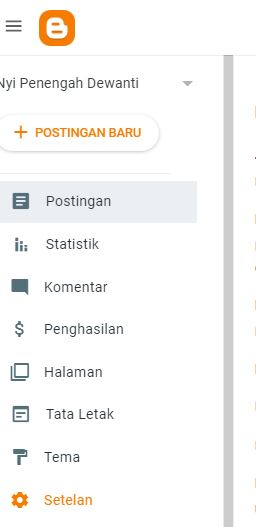 Blogspot - Pilih menu ‘Setelan’, yang ada di baris kiri dan berdekatan dengan