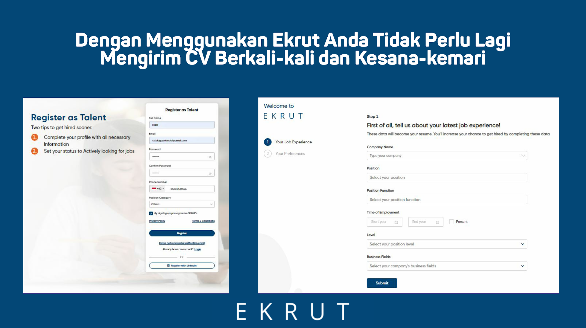 Ekrut anda tidak perlu lagi mengirim CV berkali-kali dan ke sana-ke mari. Kalau