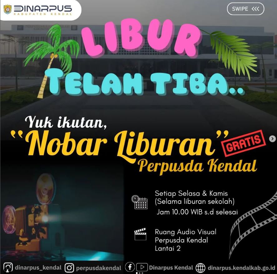 Nobar Liburan di Perpusda Kendal, GRATIS – Libur sekolah 2024 Jawa Tengah, sudah mulai nih teman-teman. Bagaimana di tempat kalian? Sama juga ya kan? Menurut para orang tua di daerah saya, libur sekolah kali ini sebulan lho. Panjang sekali waktunya bukan?