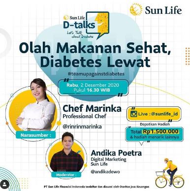 Diabetes merupakan penyakit penyerta selain hipertensi dan serangan jantung yang banyak terjadi pada pasien Covid-19. Karenanya banyak pihak yang memberikan perhatiannya untuk bisa menanggulangi penyakit diabetes, salah satunya adalah Sun Life Indonesia.