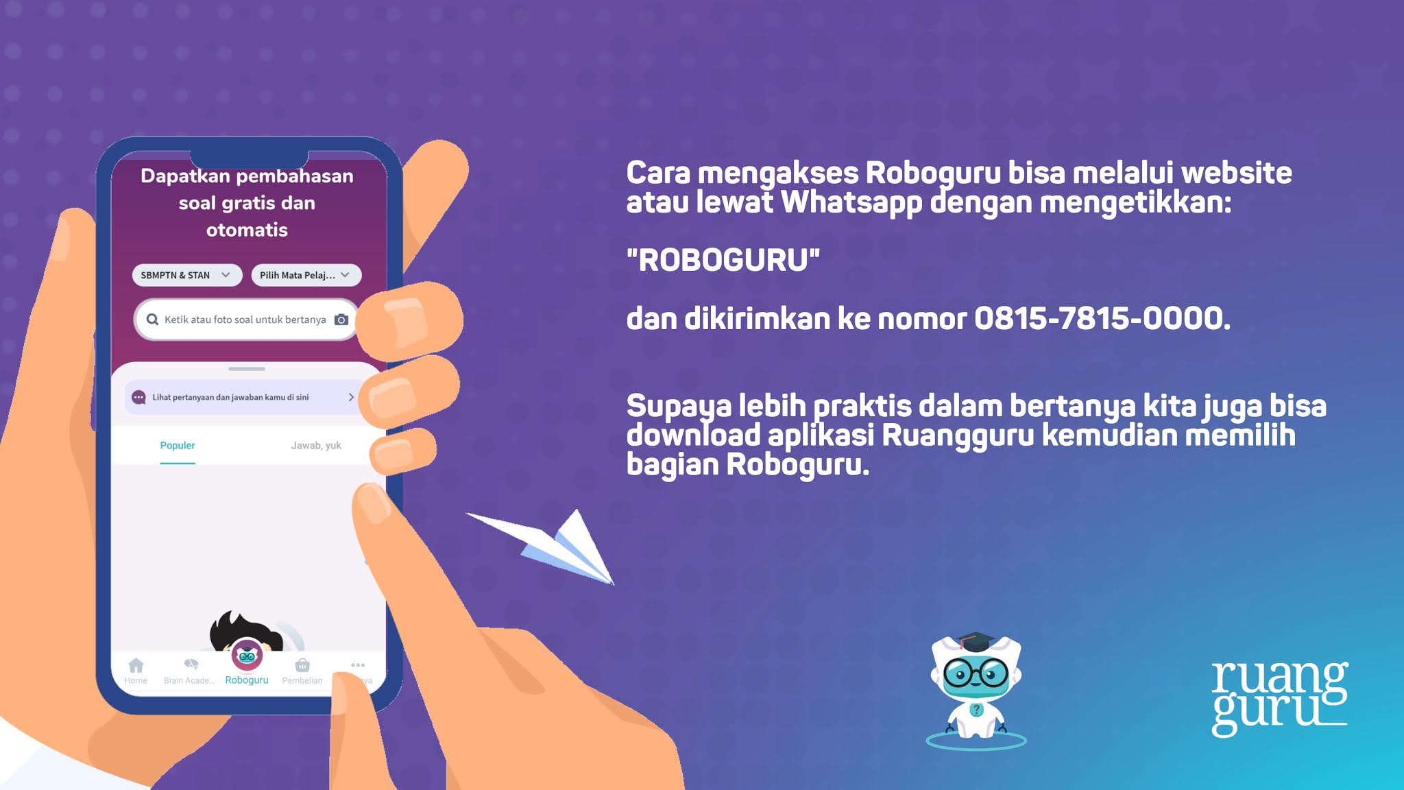 Jadi, Roboguru ini adalah sebuah kecerdasan buatan dari Ruangguru yang bisa membantu menemukan jawaban dari soal-soal yang dianggap sulit. Meskipun Roboguru bisa jadi solusi praktis dan efektif membantu siswa, namun siswa juga bisa menerima penjelasan pelajaran dan saling berdiskusi, bukan hanya menyalin jawaban saja.