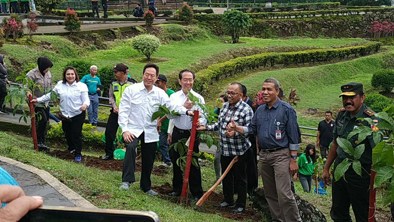bersama-sama melakukan penanaman pohon . Pohon yang disediakan antara lain